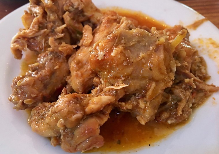 Guess what? Tastes like chicken. Maybe that’s why iguana is also known as “free chicken” in these parts. There are a ton of bones to navigate, but I manage and it’s delicious, nice and spicy with a curry sauce. Yes, I’m doing this just to say I did it. You can, too. “Ever eat a bananaquit?” I ask. God knows there’re lots of them. But they’re just for show.