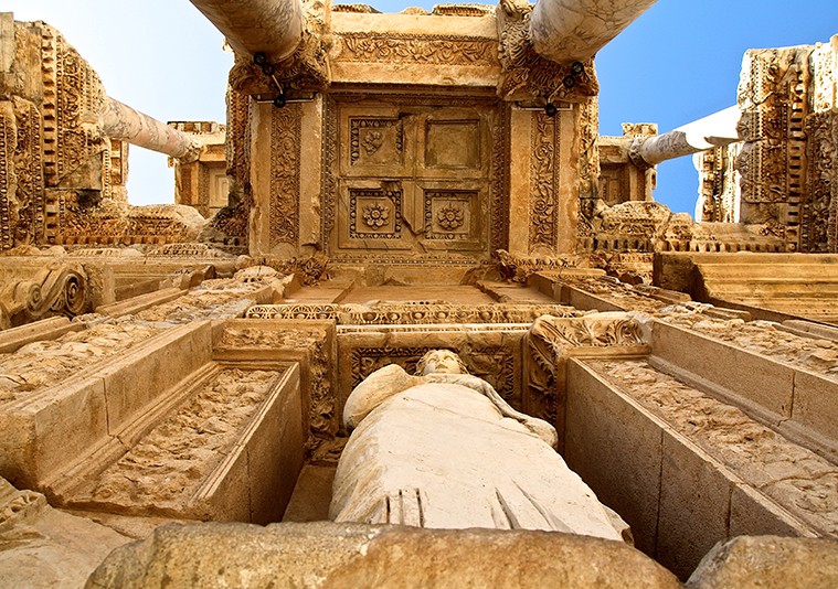 An archaeological museum, Ephesus is best known for the Temple of Artemis (built in 550 BC), one of the Seven Wonders of the Ancient World, and for the Celsus Library (pictured), the facade of which is a noted example of Roman public architecture. Visitors walk on the 2,000-year-old marble streets, through temples and a giant arena—even a public lavatory.