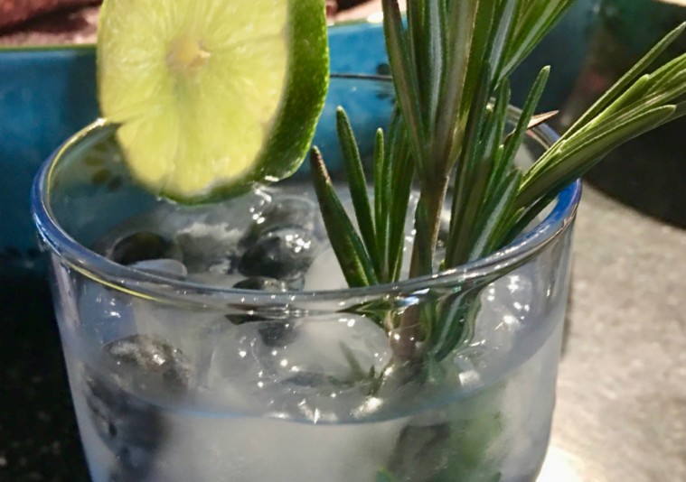 Blaine treats his to just a splash or two of Fever Tree Tonic, lots of ice, a few fresh blueberries and—here’s the kicker—a sprig of garden-grown rosemary to stir it all up. He calls it a Forest Gin.